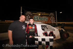 Clem started his outing by powering from the 6th starting spot to a heat race win. In the redraw he pulled the 3rd starting spot, and that's where he started on the grid for the finale. Tyler wasted little time working his way to the front of the pack as he snared the top spot with a daring three-wide pass on the first lap. From that point he cruised to the victory at the 3/8 mile oval. Billy Nichols, Jason Garver, Roger Crouse, and Rich Pratt completed the top five finishers. Full results from the event are available at www.BubbaRacewayPark.com. |